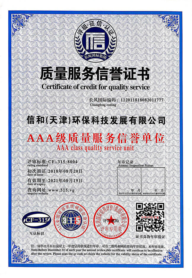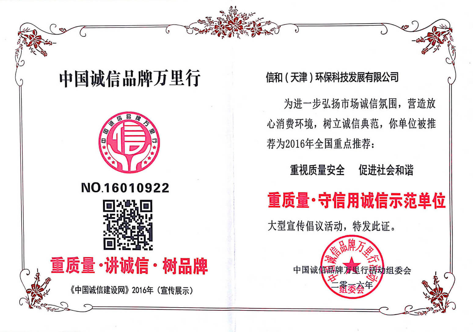 “質量就是生命”。信和重質量、守信用,被中國誠信品牌萬里行推薦“誠信示范單位”、“AAA資信等級”、“AAA級誠信經營示范單位”、“誠信經理人榮譽證書”、“誠信企業(yè)家榮譽證書”、“中國產品質量放心達標企業(yè)”、“誠信品牌聯(lián)盟會員單位”、“中國質量誠信AAA級品牌企業(yè)”、“中國百強優(yōu)秀企業(yè)”、“節(jié)能環(huán)保推廣產品”、“全國科技創(chuàng)新企業(yè)”等榮譽稱號。